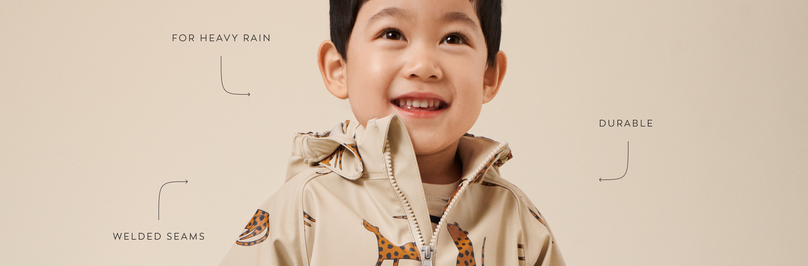 To endure high water pressures, our PU coated styles have been detailed with water-tight and windproof welded seams to protect your child in the worst of downpours.
