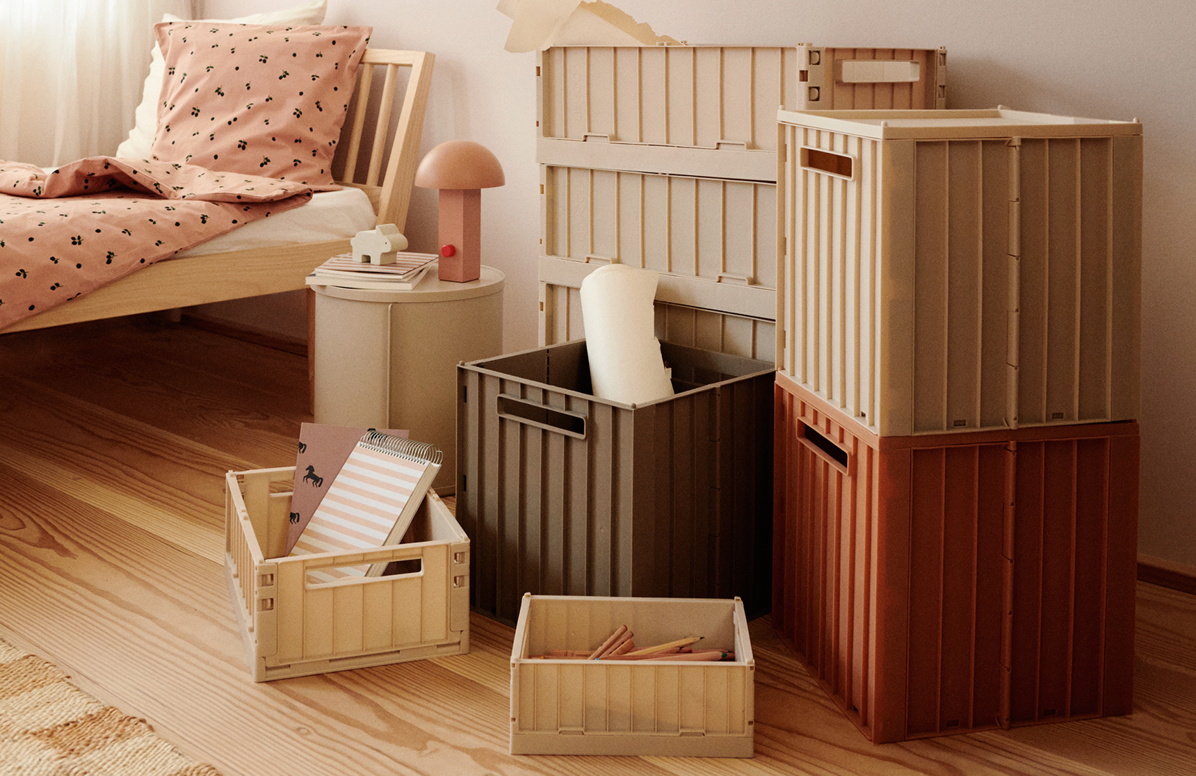 The WESTON storage boxes are crafted from 60% recycled PP, now more versatile than ever with the new compatible wheels and lids that make your favourite crate adapt to every corner of your home.